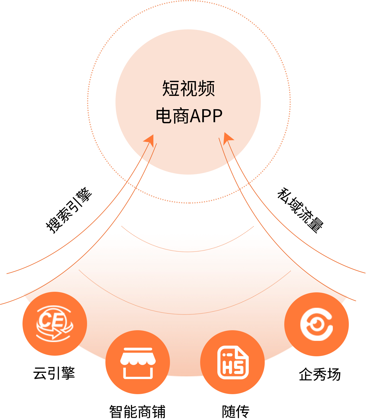 悉数打造了企业私域流量,将搜索引擎、站点商铺等移动端流量通过各大电商以及短视频APP多渠道快速传播,