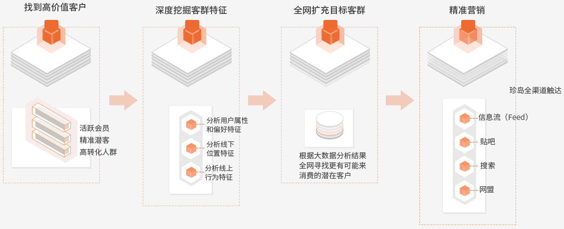 借助珍岛全域大数据能力,打通线上、线下以及第三方人群数据,刻画客群有效特征。有效细分
