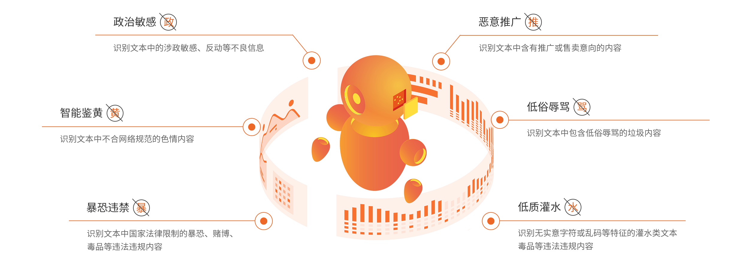 内容审核识别准确率高,对文本进行快速处理,极大减少人工审核工作量,杜绝线上风险