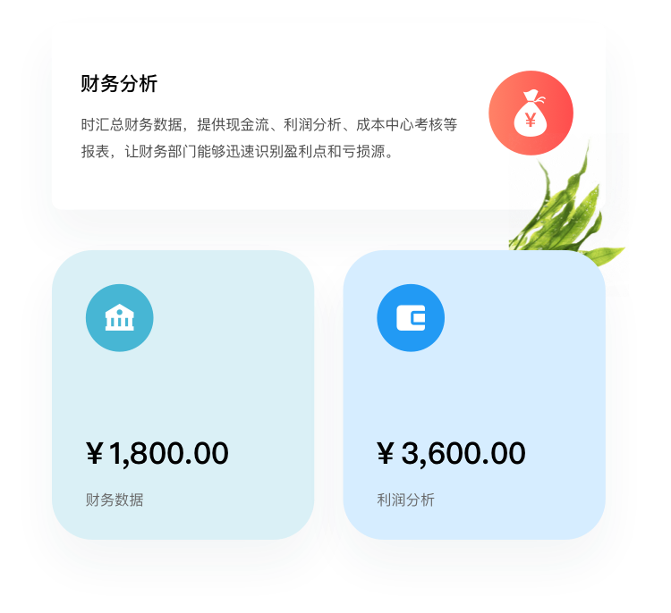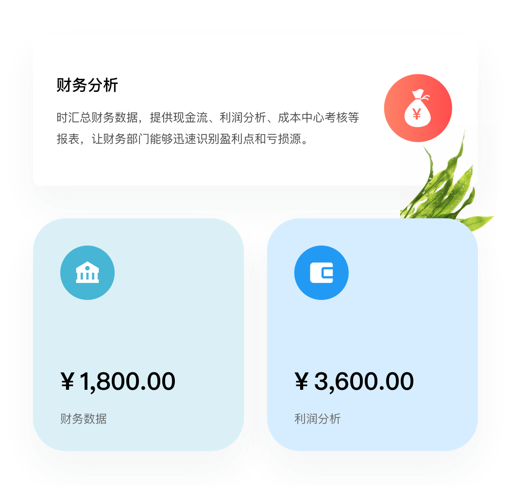 • BI系统实时汇总财务数据,提供现金流、利润分析、成本中心考核等报表,让财务部门能够迅速识别盈利点和亏损源,精确把控预算执行情况,加强财务管理。