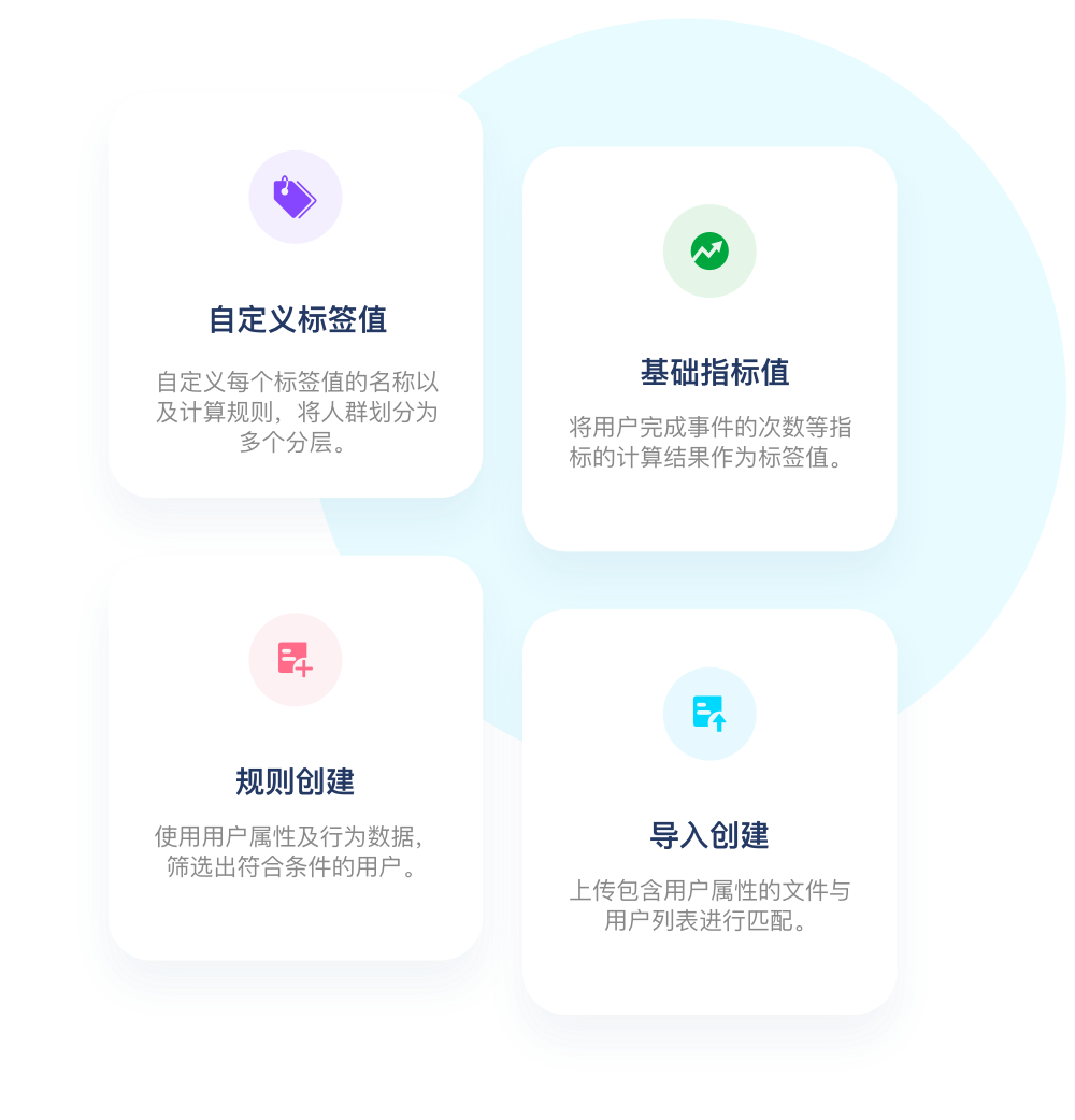 支持通过规则创建、导入创建、lookalike创建等方式进行分群的创建。