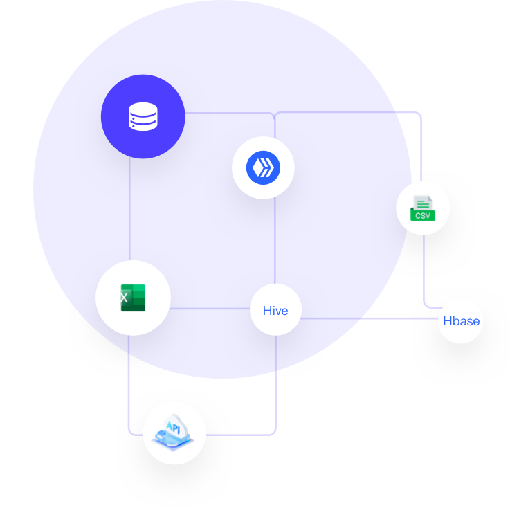 支持mysql、hive、clickhouse、Hbase等多种数据库;支持excle\csv文件导入;API接口对接。
