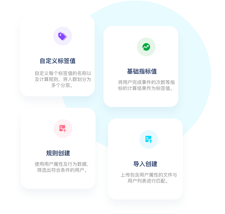支持多种标签一站式创建方式,高效完成用户360度标签体系。标签创建方式支持11种创建模式。