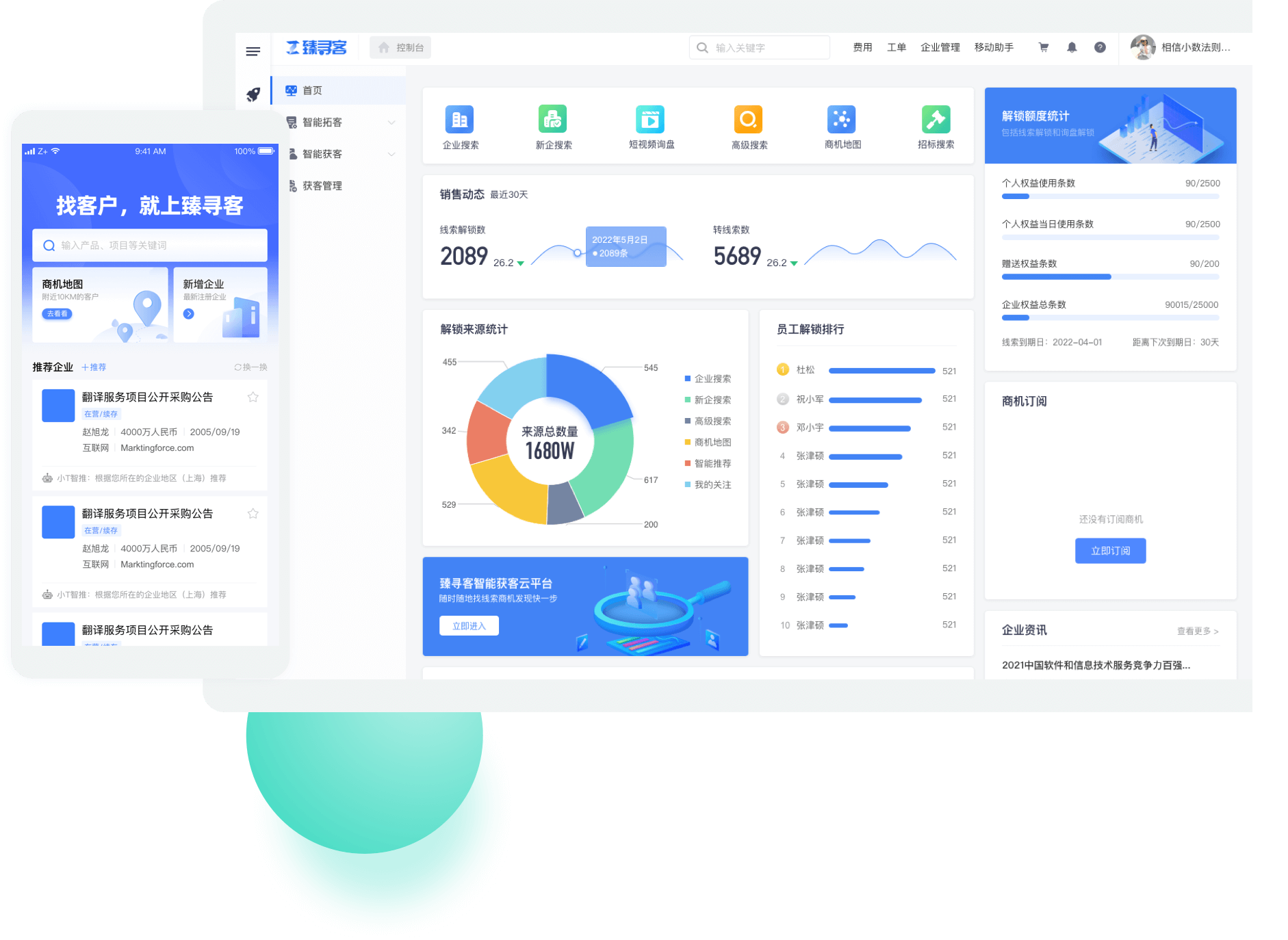 企业全员随时随地查询客户线索