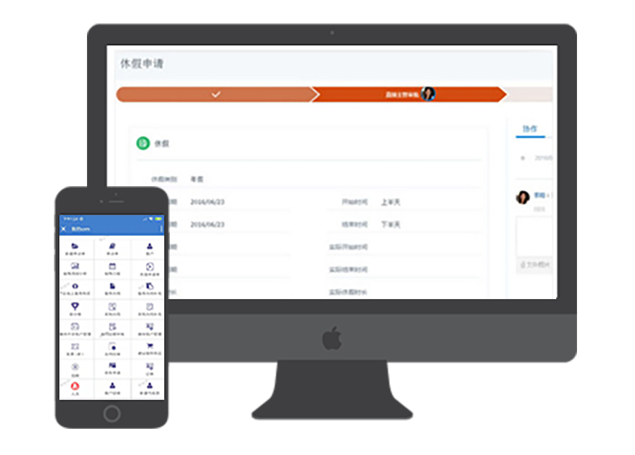 支持考勤异常提醒,补签、休假、加班可在移动端申请、审批