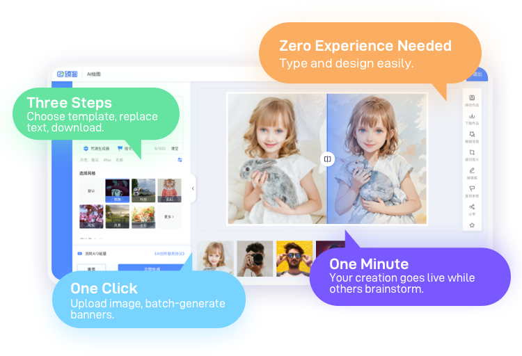 Create multiple design images with one click to enhance marketing swiftly.