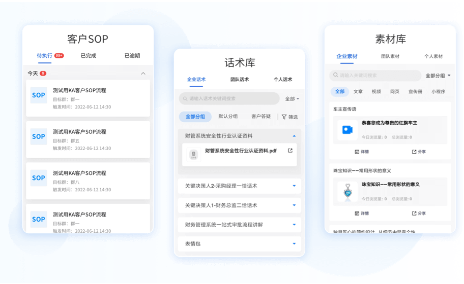 “话术库”+“素材库”+“客户SOP”组合展业