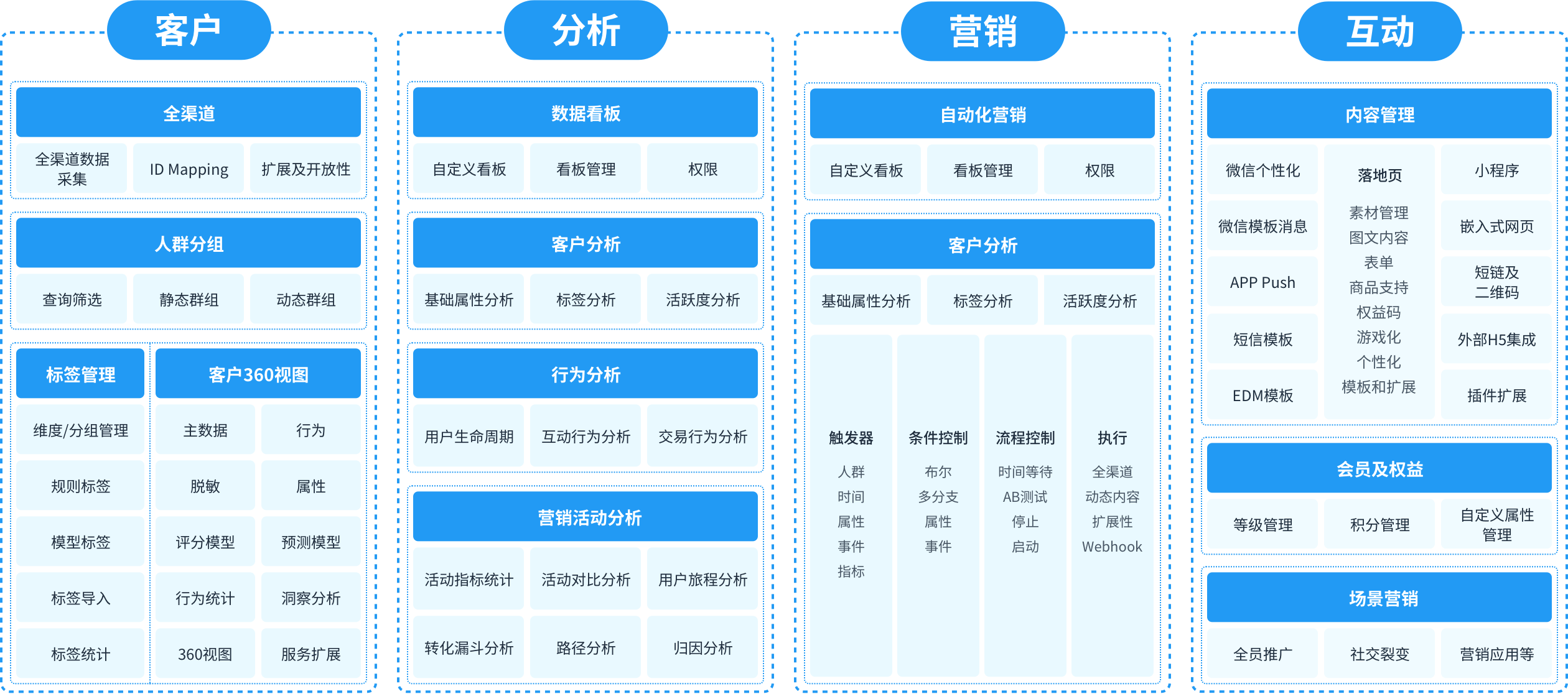 通过线上营销的工具化赋能,对C端流量进行“影响力”的持续孵化,包括品牌形象的建立、对客户的持续投教、各种营销活动的精准触达、客户行为/偏好的持续追踪等,并依托于数据分析工具,保障经营动作的精准和高效。